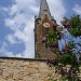 Der Turm besteht aus zwei Bauphasen, die unteren drei Geschoße wurden im 13. Jahrhundert errichtet und stammen von der Vorgängerkirche. Durch die veränderte Ausrichtung des Neubaus ist der Turm heute der Südwand des Kirchenschiffs aus dem 19. Jahrhundert mittig vorgelagert. Der Turmaufbau mit dem hohen Spitzhelm wurde nach Beendigung des Neubaus von 1860 bis 1861 errichtet. Im Inneren des älteren Turmteils befinden sich Epitaphe ortsansässiger Adelsfamilien aus dem 16. bis 18. Jahrhundert, die vom Vorgängerbau hierher versetzt wurden.